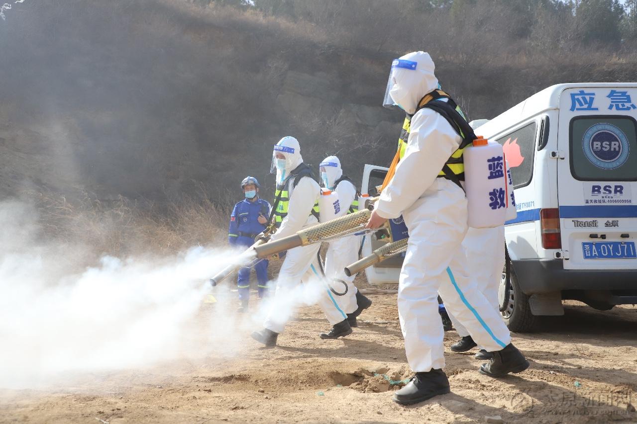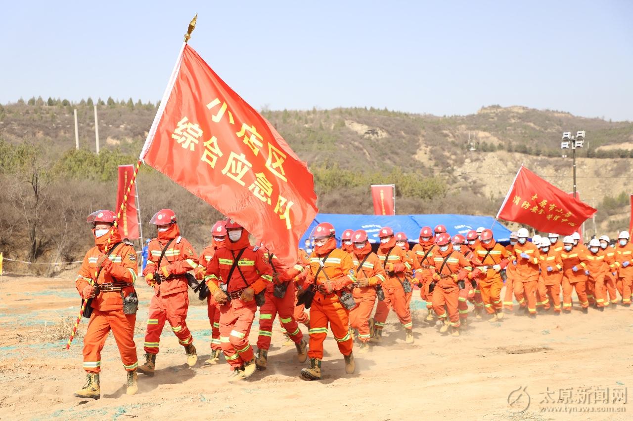 3月30日,小店區在東山五龍城郊森林公園北側黑駝村舉行2022年森林火災應急救援演練。