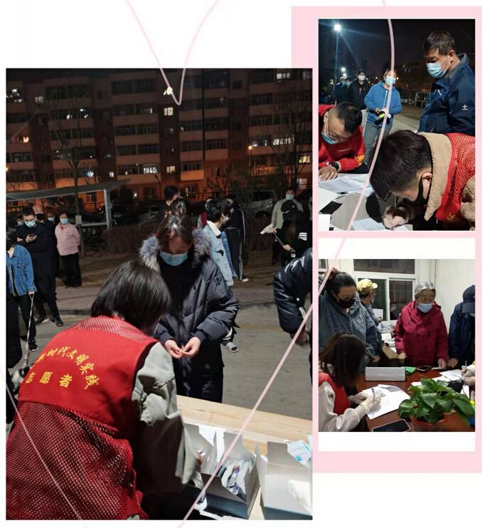 晚上8:30,在轄區黨員中心戶的帶隊下,志愿者隊伍深入網格樓院,設立黨員先鋒崗,并利用微信群、大喇叭、入戶等方式號召轄區居民有序排隊領取抗原檢測物資,志愿者們在宣傳講解疫情防控政策的同時,主動幫助轄區居民進行自測自查,耐心解答疑問,確保抗原檢測應檢盡檢、全員覆蓋。經過4個多小時大家的共同努力,并四社區黨委順利完成當日全員檢測任務?! ?span>