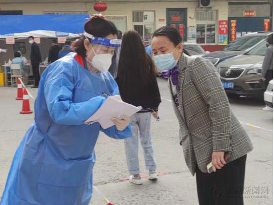 “姑娘,您能幫我倆做一下抗原檢測嗎?我們年齡大了,不太會操作。”家住老軍營小區21號樓4單元的劉勝奎、張凡雙兩位老人,因為不會自己做抗原檢測,正著急時。“別擔心,我們來幫你們。”在安撫老人擔憂情緒的同時,李小平嚴格按照防疫要求,對自身和周邊環境進行消毒,并耐心幫助兩位老人完成整個抗原檢測。