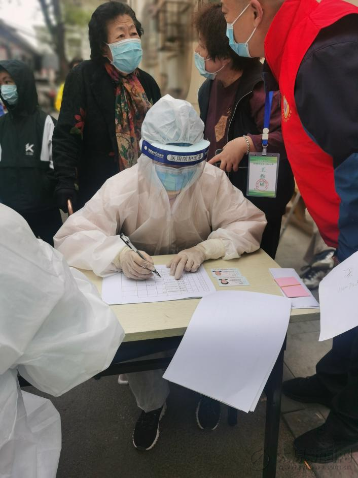 “媽,你防護(hù)服一定要穿好。”連凱是社區(qū)63歲老黨員翟春芳的兒子,母子一起披掛上陣,活躍在全員核酸檢測的登記臺上,發(fā)揮優(yōu)勢,精準(zhǔn)定位,快速疏導(dǎo)著排隊(duì)居民。