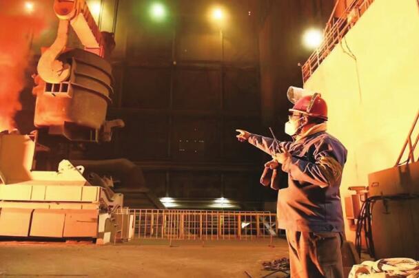裝有50噸高溫鐵水的鐵包在空中緩緩移過,每一次吊運對操作工人都是一次考驗。電爐甲班的張俊懿堅持“手指口述”的操作規程,緊繃神經,移動觀察定點指揮,確保鐵水吊運作業安全完成。