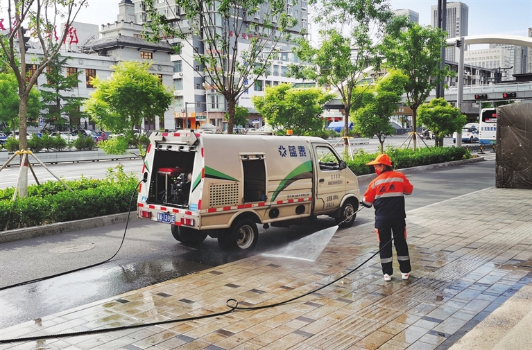 昨日清晨時分,一輛輛沖洗車、濕掃車、水車集體出動,環(huán)衛(wèi)工人彼此招呼著,開始又一天的濕式化清掃和沖洗作業(yè)。按照創(chuàng)建國家衛(wèi)生城市的要求,市、區(qū)兩級環(huán)衛(wèi)部門已加大濕式化作業(yè)頻次,提升道路潔凈度,力爭給廣大市民提供干凈整潔的市容環(huán)境。
