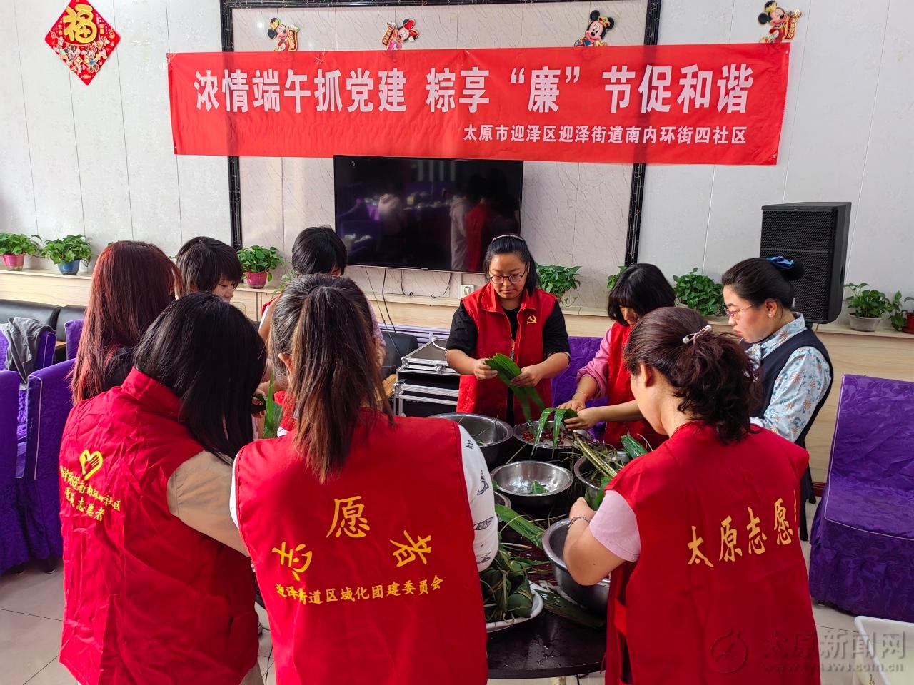 5月23日,迎澤街道南內環街四社區開展“濃情端午抓黨建粽享‘廉’節促和諧”端午節包粽子活動。