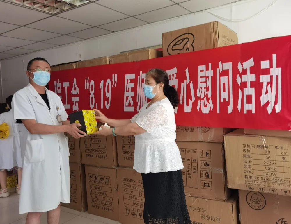 金秋八月,橘井生香。2022年8月19日是第五個“中國醫師節”,本次節日主題為“‘醫’心向黨、踔厲奮進”。在黨的二十大日益臨近之際,為了展現衛生健康系統精神風貌、體現我院廣大醫務工作者使命擔當,院工會開展了醫師節慰問活動,為醫院1281名醫、藥、技人員送上慰問品,并對堅守在醫療工作一線、奮戰在抗擊新冠肺炎疫情前沿、致力于守護人民群眾健康的全體醫師們致以節日的問候!