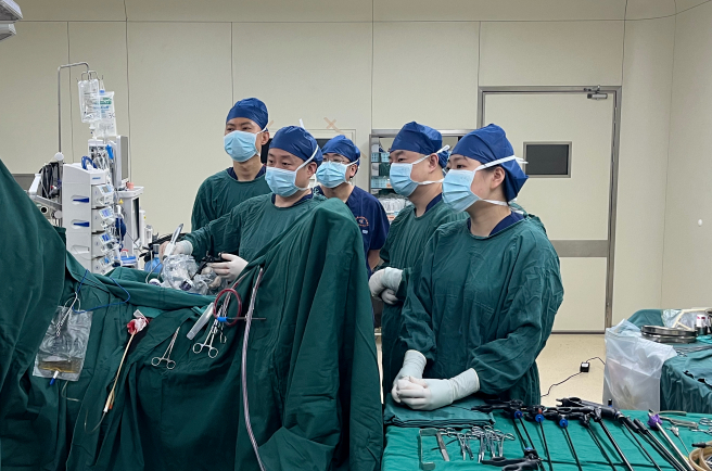 ▲北大醫院太原醫院(太原市中心醫院)泌尿外科主任王宇正在手術