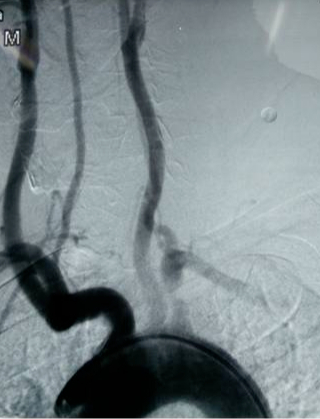 ▲DSA示左側鎖骨下動脈起始段重度狹窄