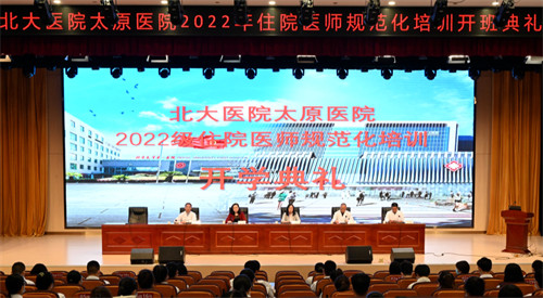 9月26日下午,在丹楓迎秋的季節(jié),北大醫(yī)院太原醫(yī)院(太原市中心醫(yī)院)2022級(jí)住院醫(yī)師規(guī)范化培訓(xùn)(住培、助理全科、專碩并軌研究生)開學(xué)典禮在汾東院區(qū)隆重舉行。山西省住培管理中心主任李韶瑩,山西醫(yī)科大學(xué)研究生學(xué)院副院長(zhǎng)高泉,北大醫(yī)院太原醫(yī)院黨委書記郭進(jìn)升、副院長(zhǎng)袁建峰、武飚出席了開學(xué)典禮。53名2022級(jí)住培學(xué)員、29名助理全科學(xué)員、28名專碩并軌研究生參加了開學(xué)典禮。各專業(yè)基地主任、教學(xué)主任、教學(xué)秘書、研究生導(dǎo)師代表和住培老學(xué)員觀摩了開學(xué)典禮。