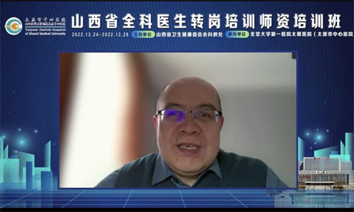為進一步加強全科醫生隊伍建設,提高全科醫生轉崗培訓質量,12月24日至26日,由省衛生健康委科教處主辦,北京大學第一醫院太原醫院(太原市中心醫院)承辦的首屆“山西省全科醫生轉崗培訓師資培訓班”于線上順利召開。山西省衛健委科教處段朝霞、張凱利,北大醫院太原醫院黨委書記郭進升,國內專家杜雪平、周亞夫、王仲,省內專家馮玫等出席會議。會議由北大醫院太原醫院副院長霍建忠主持。