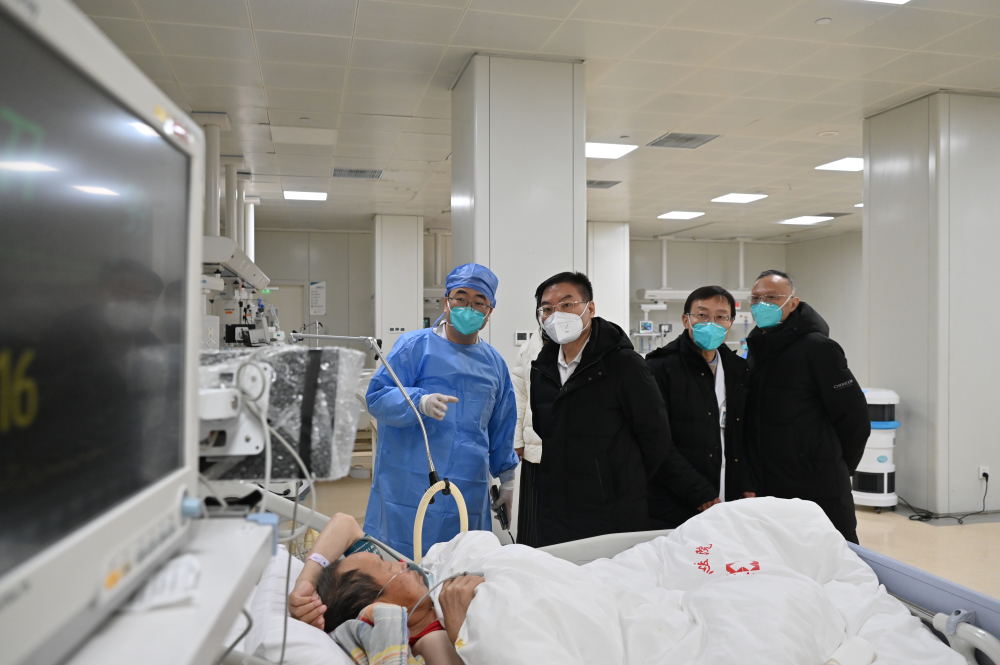 張澤主任一行前往急診科和ICU等地,查看了急診患者的收治和轉診、急危重癥患者的救治等情況,向一直堅守在救治一線的醫務人員表示親切慰問和誠摯感謝,勉勵大家繼續用實際行動詮釋醫者仁心和大愛無疆,持續為群眾提供優質高效的醫療服務。