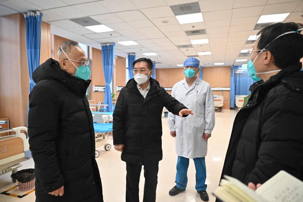12月29日上午,市衛健委主任張澤一行來到北大醫院太原醫院(太原市中心醫院)汾東院區,調研指導防控新形勢下的醫療救治工作,探望慰問一線醫務人員,院黨委書記郭進升、副院長袁建峰、相關科室負責人陪同調研。
