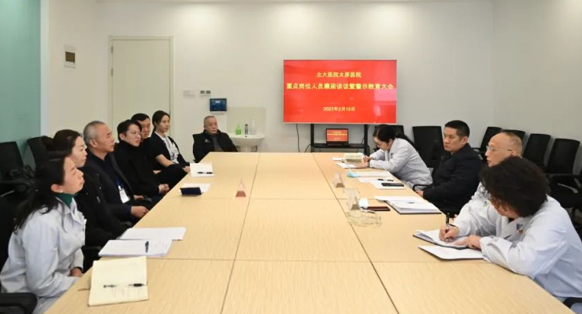 為進一步加強醫院廉政建設,提高重點崗位人員的廉潔自律意識和拒腐防變能力,2月15日上午,北大醫院太原醫院(太原市中心醫院)召開重點崗位工作人員集體廉政談話暨警示教育會議。本次談話采取“一對一、面對面”方式進行,黨委書記郭進升,黨委委員、副院長武飚與參會人員集體廉政談話,相關職能科室負責人參加會議。