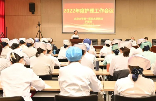 楊曉麗提出“兩個感謝、三個要求”。第一是代表所有護士長、全體護理人員感謝書記和領導班子對護理隊伍的關心和愛護;二是感謝護理隊伍全體人員。2022年度護理工作取得了非常優異的成績,在疫情防控工作中也具有突出表現,每一位護士都在一線奮戰,表現出高水平的專業性與紀律性。她要求:一是在保持現有成績的基礎上,以三級公立醫院考核為導向,繼續追求進步與發展,沒有最好,只有更好;二是向北京大學第一醫院看齊,繼續加強進修學習,真正做到同質化;三是所有護理人員一如既往地團結一致、積極向上。
