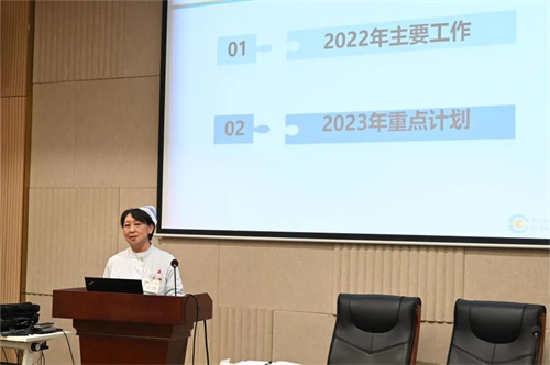 護理部主任龐貴鳳分別從2022年取得的成績、抗疫工作先進表現、目標責任考核等方面進行了深刻總結,同時對護理團隊2023年工作提出了加強護理隊伍建設、持續深化優質護理服務、加強護理學科建設等十二點計劃。