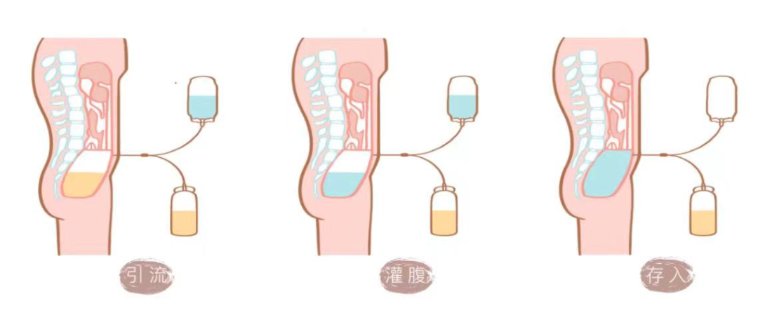 腹膜透析就是將腹膜透液通過一條“腹透管”灌進腹腔里,利用人體自身的腹膜交換功能,把血液中的毒素和多余水分排到腹透液里,然后放出腹透液。