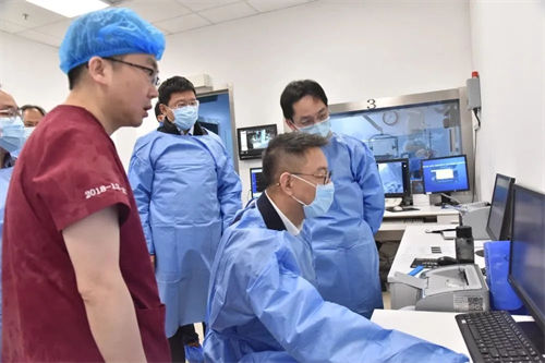啟動(dòng)儀式后,李建平一行實(shí)地走訪了汾東院區(qū)心血管內(nèi)科門(mén)診、住院病區(qū)、CCU、導(dǎo)管室及心臟康復(fù)中心,并針對(duì)復(fù)雜冠心病及結(jié)構(gòu)性心臟病介入治療進(jìn)行手術(shù)演示。