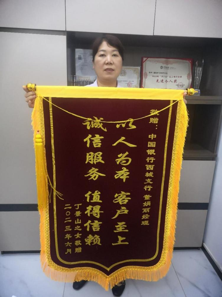 7月4日上午,客戶丁某的二女兒懷著激動(dòng)的心情來(lái)到中國(guó)銀行運(yùn)城西城支行,為理財(cái)經(jīng)理董娟麗送來(lái)感謝信和一面錦旗,客戶不停地說(shuō)著“謝謝”,感動(dòng)的淚水在眼里打轉(zhuǎn)……