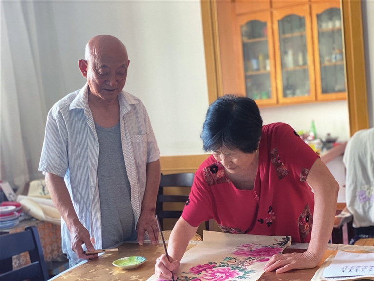 杜保倉老人愛好寫書法,老伴晁淑貞酷愛吹葫蘆絲,老兩口結婚53年。在他們看來,幸福的秘訣就是培養興趣愛好,一同成長。