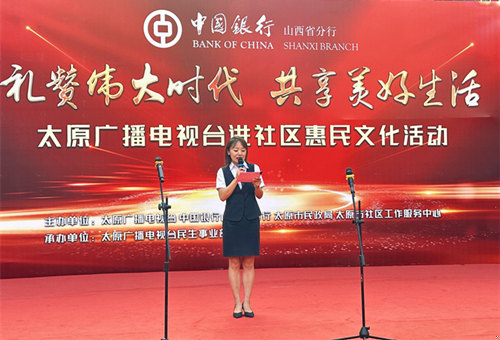 9月7日,中國銀行山西省分行聯合太原廣播電視臺舉辦“禮贊偉大時代、共享美好生活”進社區惠民文化活動。
