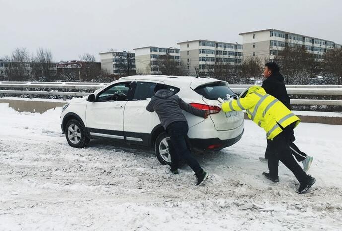 車輛受阻的情況引起交警支隊的重視,第一時間抽調馳援力量、協調鏟雪設備的同時,支隊領導趕赴一線現場指揮。交警的努力也感動了現場的群眾,大家紛紛走出車外,幫助交警推車,還有附近居民駕駛越野車攜帶拖車繩趕到現場,積極參與救援。就這樣,大家齊心協力,鏖戰(zhàn)12小時,至2月21日凌晨2時,幫助1000余輛受阻車輛全部擺脫困境。