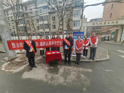 廳堂戶外相結合,全面覆蓋商戶。柜臺工作人員負責對行內的企業客戶進行現場講解、簽訂不拒收承諾書等;外拓小組負責向周邊網格區域進行輻射,深入社區、商店、超市等,并對經營情況進行全面排查監督,張貼支持現金支付標識,增強商戶自覺遵守法律意識,不得拒收人民幣現金。