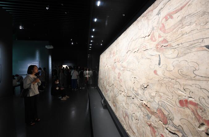“霸府別都”單元通過展示出土的魏晉南北朝時期高等級墓葬,揭示晉陽城多元一體的民族融合新景象。“盛唐北都”單元匯集晉陽古城高等級建筑基址出土的精美文物,回望唐代晉陽城臻于極盛的規模。萬柏林區小井峪小學出土的郭行墓,是截至目前太原發掘出土面積最大的唐代壁畫墓,甬道壁畫及仿門樓建筑圖案,是太原首次發現。