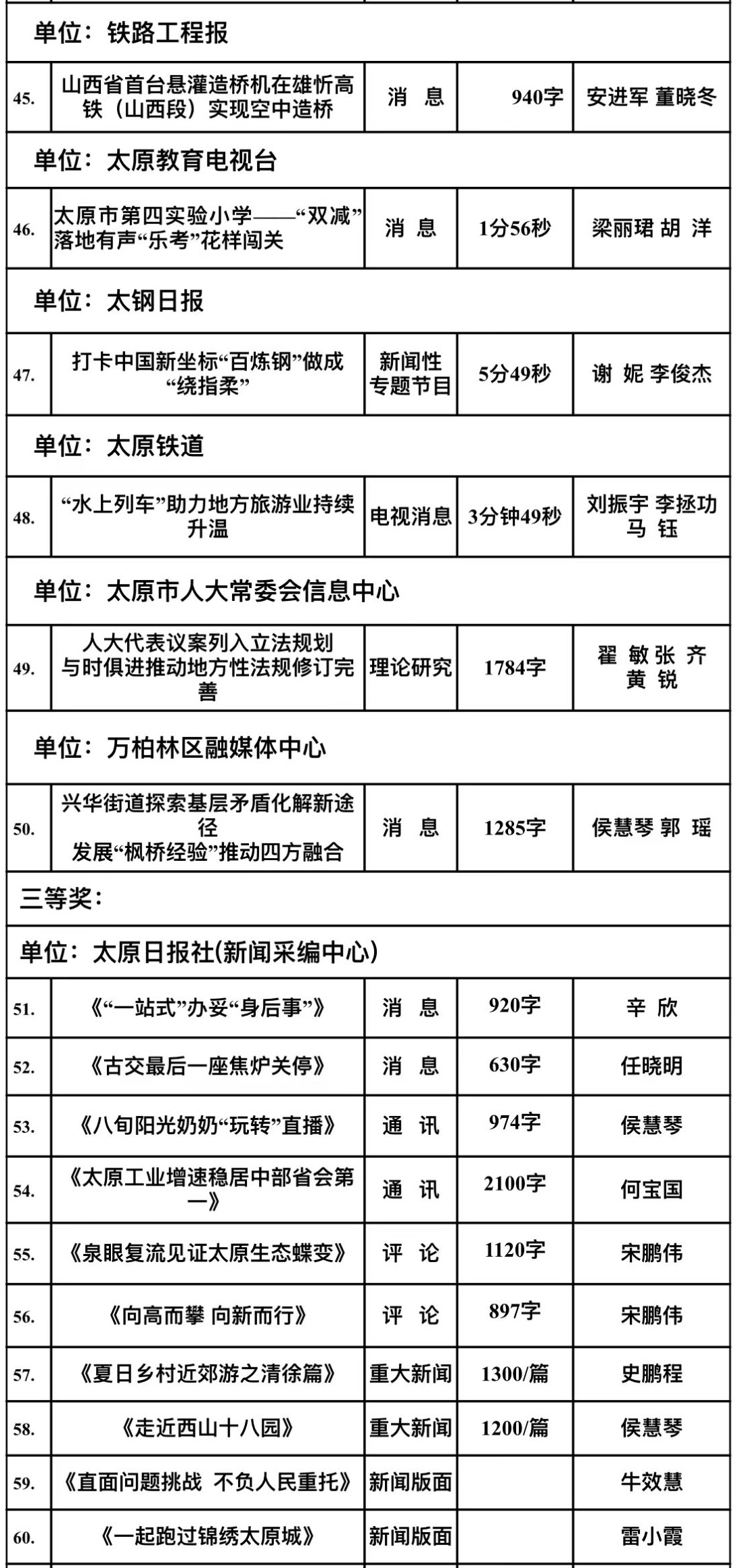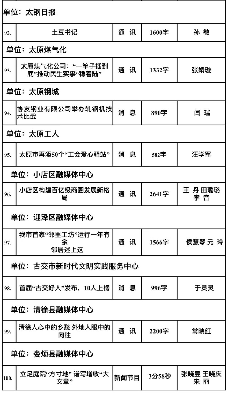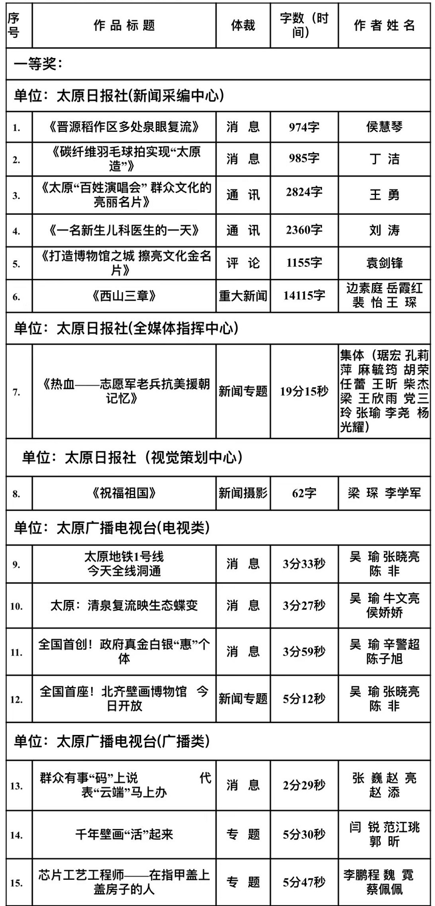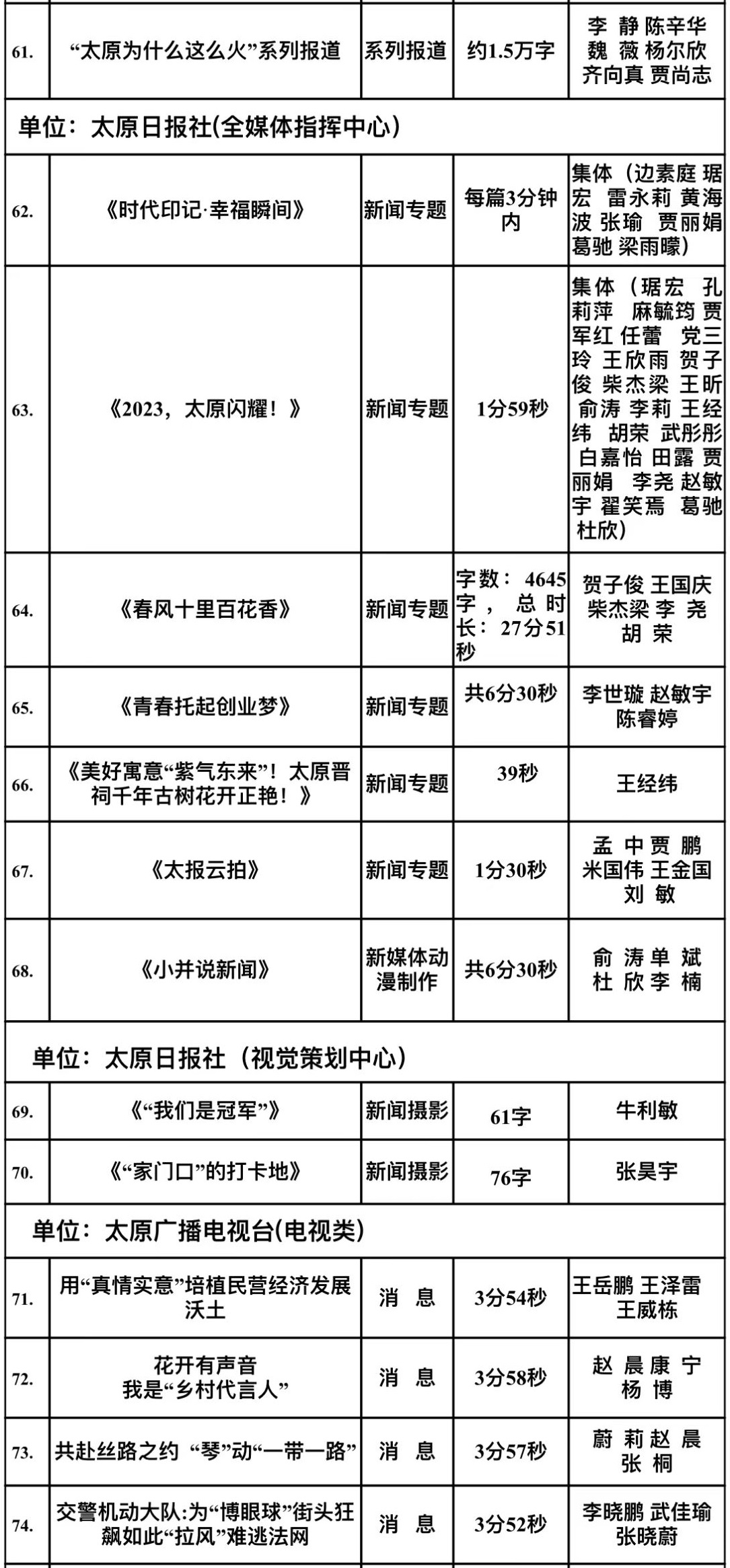 第三十三屆(2023年度)太原新聞獎評選揭曉公示