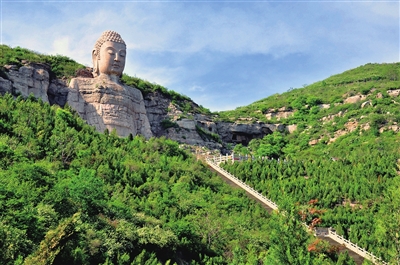 蒙山大佛位于太原市晉源區(qū)寺底村西北,始建于北齊天保年間,距今已有約1500年歷史,是中國北朝時期體量最大的摩崖大佛和佛閣。