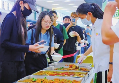“食堂師傅們可忙了,做了紅燒魚、清蒸魚、酸菜魚、剁椒魚,我吃了很多。當天,每個打飯窗口都提供月餅,好幾種口味?!睆場┇W回憶,她與同學一起在食堂吃了頓中秋團圓飯。年輕人一起品嘗美味的飯菜,一起海闊天空地聊著,非常愉快。不少同學興奮地給家人打去電話,訴說這份驚喜。