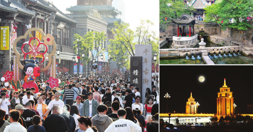 隨著清明假期的臨近,自駕游和自由行的熱度不斷攀升。在自駕游熱門目的地榜單上,太原市位列第10名,受到各地自駕游游客的青睞。左圖為鐘樓街人流如織,右上圖為晉祠難老泉,右下圖為迎澤大橋。