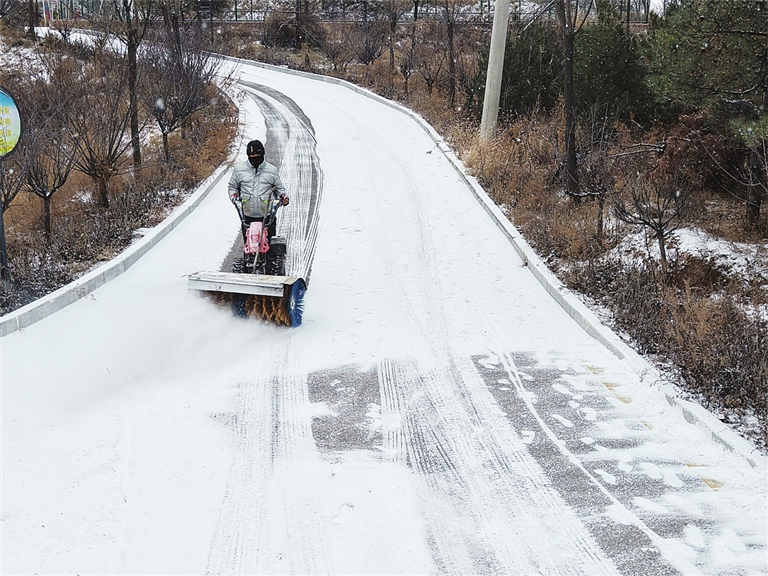 清徐縣雙湖城小區里,暖意與干勁同樣升騰。物業人員早早啟動應急預案,手持工具破冰開路;商戶們積極落實“門前三包”,陸續加入清雪隊伍。