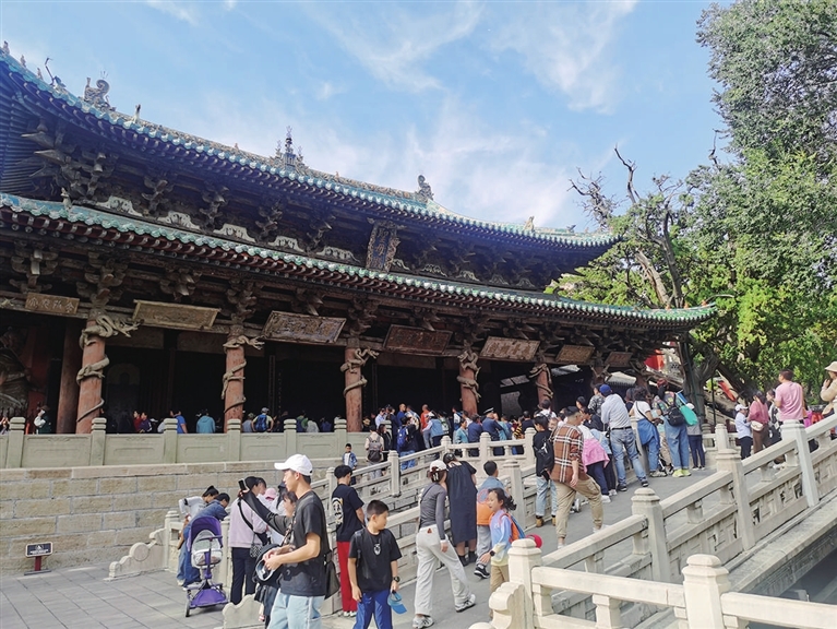 9月30日,中秋國慶假期第二天,秋高氣爽,市民出游熱情不斷升溫,晉祠景區(qū)內(nèi)人潮涌動,熱鬧非凡,一派文明賞秋、和諧有序的場景。