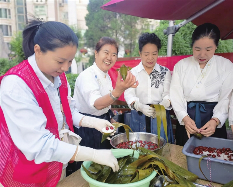 “包粽子要用完整有韌性的粽葉,先把米和棗包嚴實,再扎緊馬蓮帶,不然一下鍋就成一鍋粥了……”水總社區里,社區老黨員王阿姨手把手教年輕黨員包“愛心粽”。折粽葉、填糯米、打繩結……大家包出的粽子個個有模有樣。香氣撲鼻的“愛心粽”煮好后,大家送到轄區困難黨員、失獨家庭和獨居老人手中,也將美好的祝福送給他們。